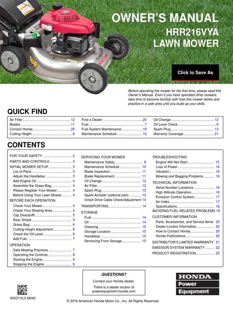 Free PDF Honda Mower Owners Manual Doc Open Library
